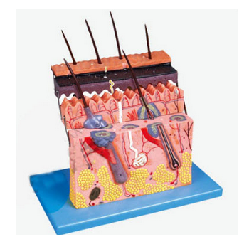 GD/A41002皮膚組織結構放大模型產(chǎn)品介紹:1、該模型由表皮和真皮各分兩部分共4個部件組成,借皮下組織與深層組織相連,并顯示表皮、真皮組織層次結構以及皮下組織和皮膚附屬器(包括毛、皮脂腺、汗腺和神...