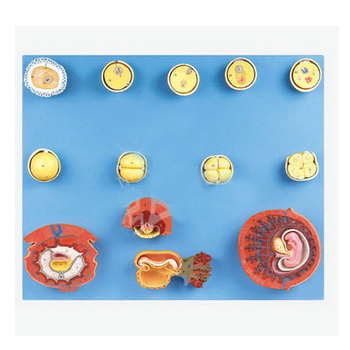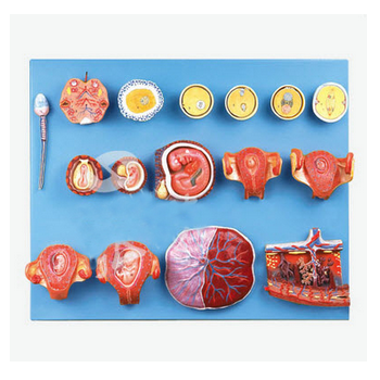 受精與早期胚胎發(fā)育過程模型 GD/A42002功能介紹■該模型由精子、卵巢、卵子、受精卵發(fā)育過程、胚盤、2-9周胚胎以及3月胎兒、胎盤等16個部件組成,并顯示從卵細胞發(fā)育到3月大小胎兒形成的人類早期胚...
