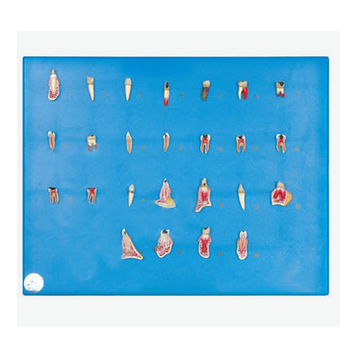 牙齒病變綜合病理分解模型 GD/B10008功能介紹■該模型顯示牙齒病變綜合病理形態,包括齲齒破壞缺損、用合金材料充填修補、化膿性牙髓炎、牙髓壞死、牙根膿腫、根尖膿腫、牙周炎、牙槽化膿等病變結構,共有...